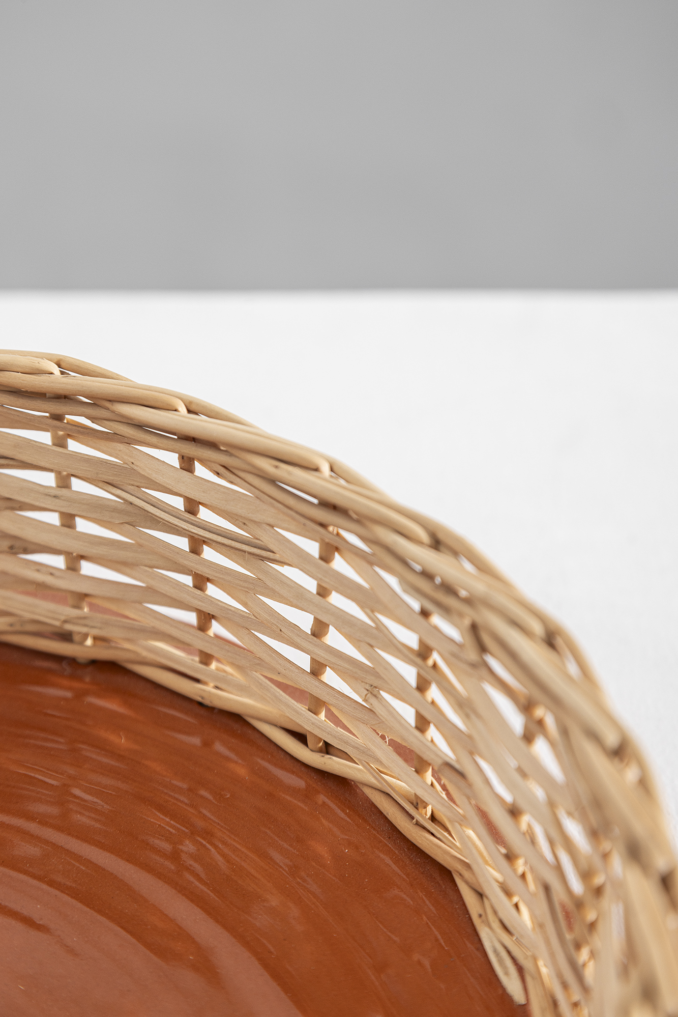 Colection of 3 pieces in wicker and terracotta.